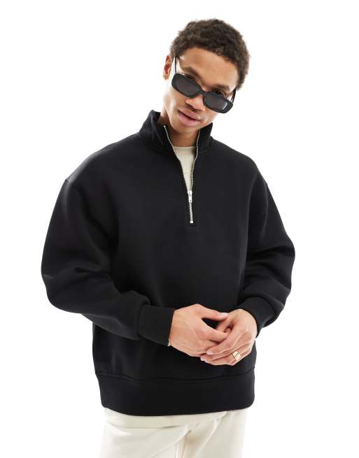 ASOS DESIGN – Czarna bluza oversize z zamkiem pod szyją z materiału w stylu scuba