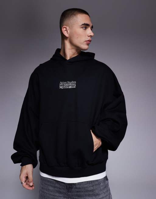 ASOS DESIGN – Czarna bluza z kapturem o fasonie extreme oversize z nadrukiem na piersi