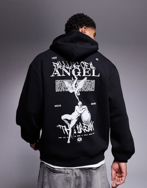 ASOS DESIGN – Czarna bluza z kapturem z nadrukiem na plecach