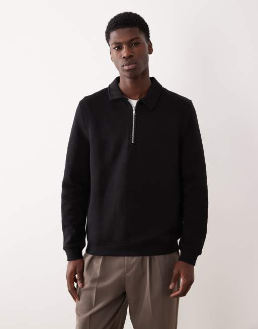 ASOS DESIGN – Czarna bluza z kołnierzem i zapięciem na zamek pod szyją