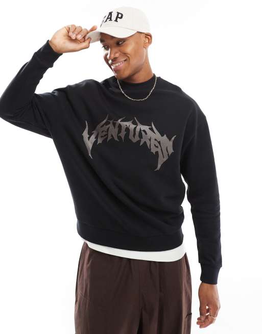 ASOS DESIGN – Czarna bluza z nadrukiem na piersi