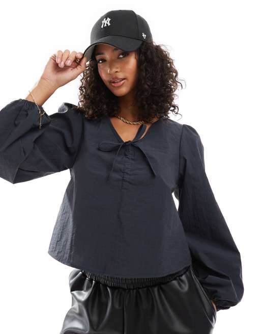 ASOS DESIGN – Czarna bluzka z długimi rękawami i marszczeniem z przodu