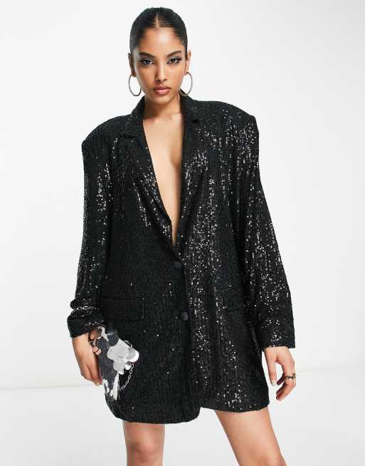 ASOS DESIGN – Czarna cekinowa marynarka oversize