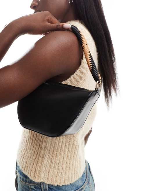 ASOS DESIGN – Czarna gładka torebka na ramię z plecioną rączką