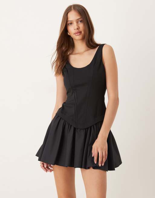 ASOS DESIGN – Czarna gorsetowa sukienka mini z obniżonym stanem i ozdobnymi przeszyciami