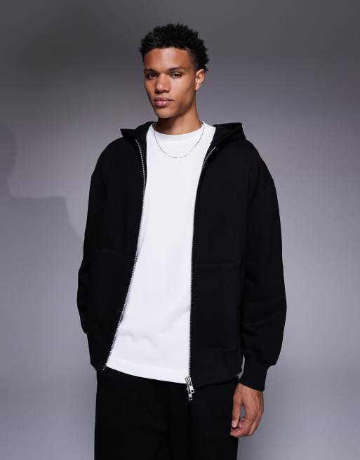 ASOS DESIGN – Czarna gruba bluza z kapturem premium o kroju oversize z zapięciem na zamek 400 g/m²