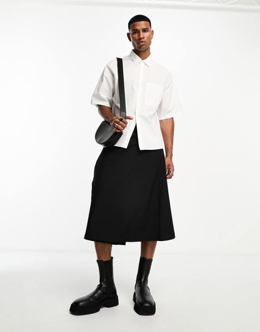 ASOS DESIGN – Czarna kopertowa męska spódnica o wydłużonym fasonie