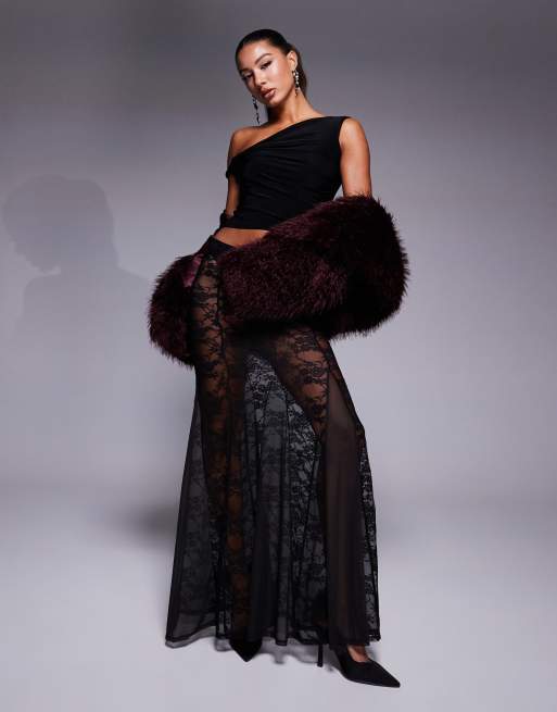 ASOS DESIGN – Czarna koronkowa spódnica maxi z godetami