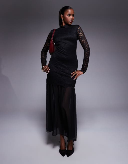 ASOS DESIGN – Czarna koronkowa sukienka maxi z obniżoną talią
