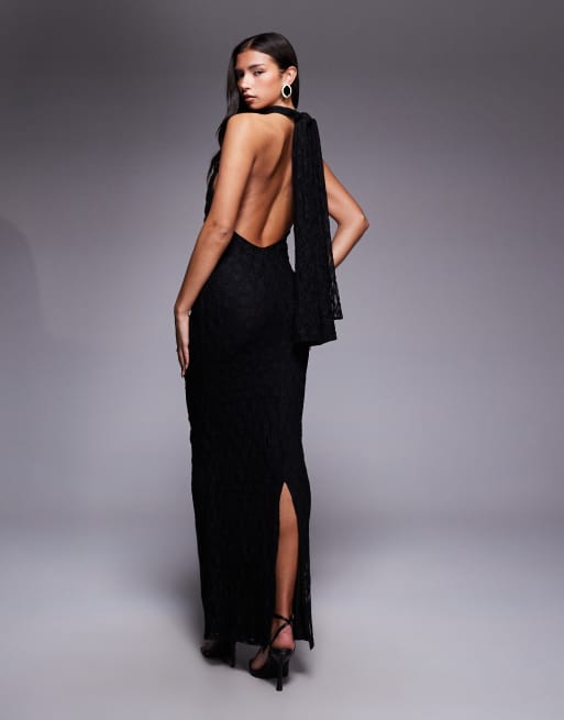 ASOS DESIGN – Czarna koronkowa sukienka maxi ze skręceniem na biuście i dekoltem halter