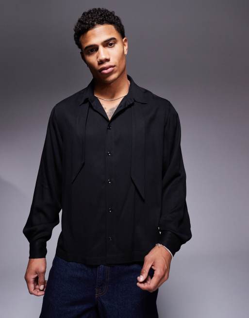ASOS DESIGN – Czarna koszula o luźnym pudełkowym kroju z wiązaniem przy szyi