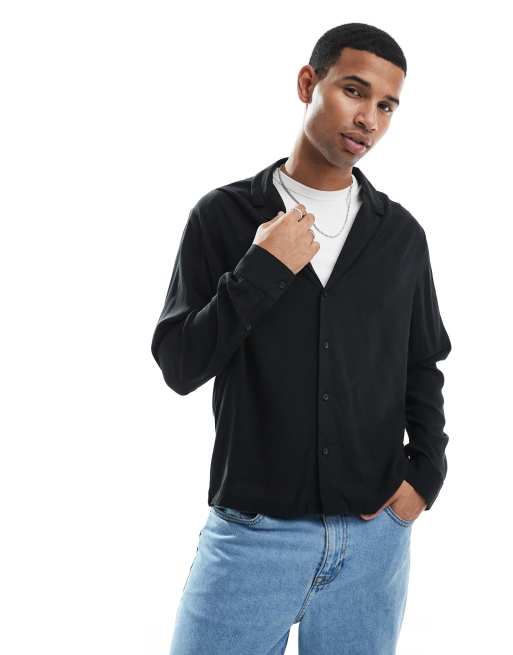 ASOS DESIGN – Czarna koszula o pudełkowym kroju z głębokim kołnierzykiem kubańskim
