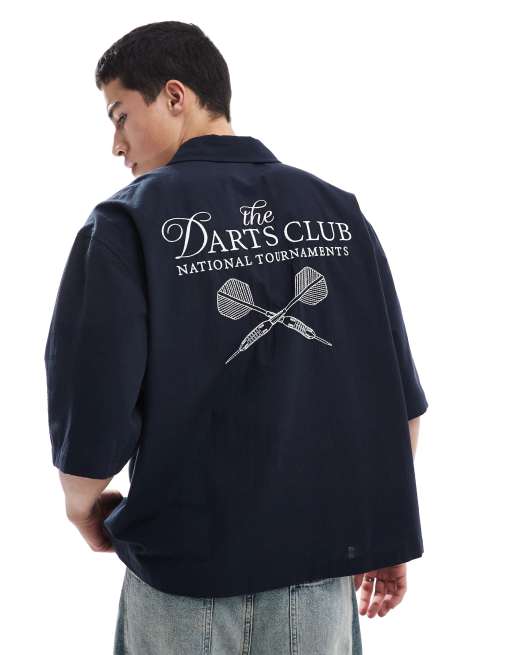 ASOS DESIGN – Czarna koszula o pudełkowym kroju z rękawami do łokci i haftem na plecach