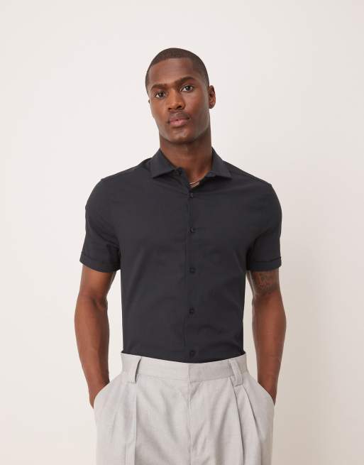 ASOS DESIGN – Czarna koszula oxford o obcisłym kroju z kołnierzykiem