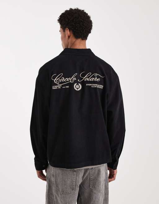 ASOS DESIGN – Czarna koszula sztruksowa o pudełkowym kroju oversize z haftowanym wzorem na plecach