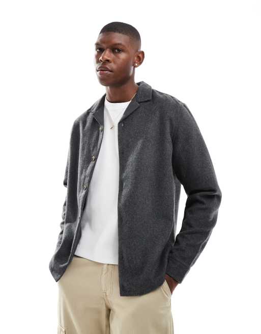 ASOS DESIGN – Czarna koszula wierzchnia o wełnianym wyglądzie z kołnierzykiem kubańskim