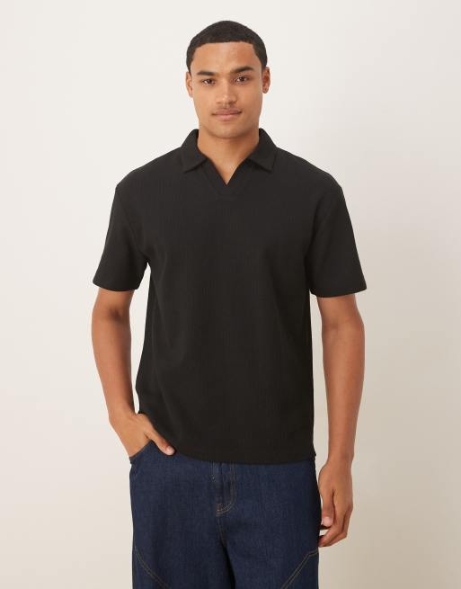 ASOS DESIGN – Czarna koszulka polo o luźnym kroju i waflowej fakturze