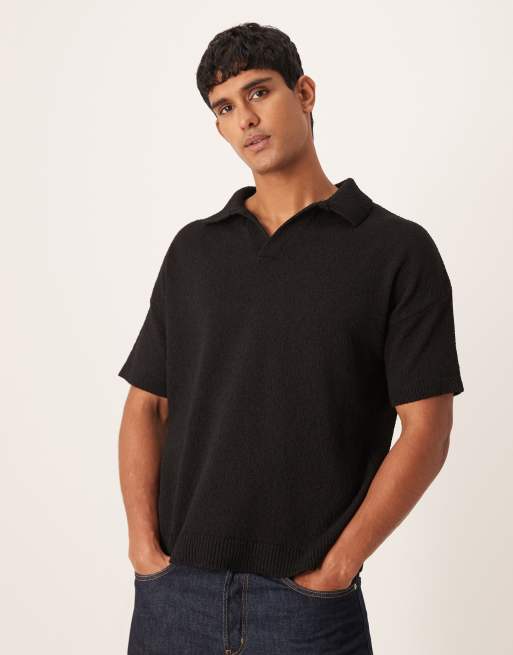 ASOS DESIGN – Czarna koszulka polo oversize z wcięciem w dekolcie z teksturowanej dzianiny