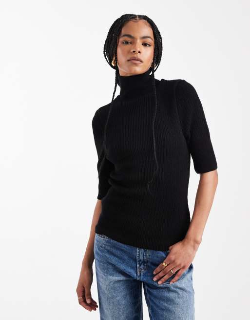 ASOS DESIGN – Czarna koszulka polo z rękawami do łokci w stylu lat 90.