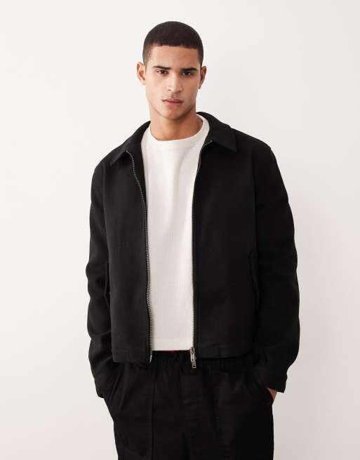 ASOS DESIGN – Czarna kurtka Harrington z imitacji wełny