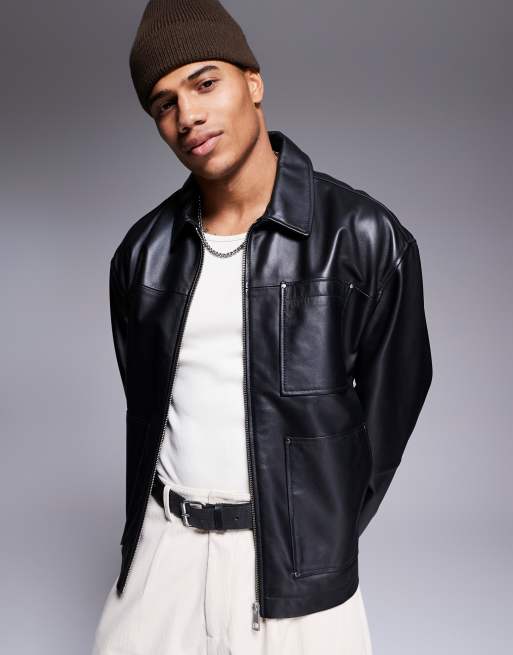 ASOS DESIGN – Czarna kurtka Harrington ze skóry naturalnej premium