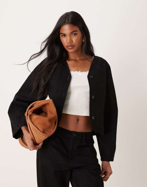 ASOS DESIGN – Czarna kurtka jeansowa z przeszyciami i formowanymi rękawami