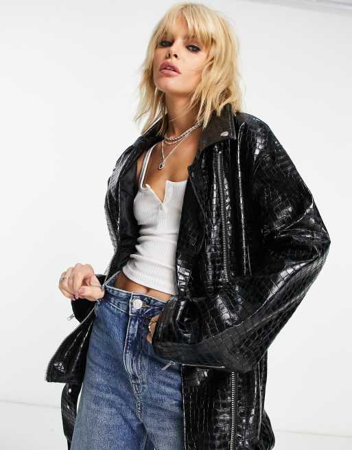 ASOS DESIGN – Czarna kurtka typu biker o wydłużonym fasonie z imitacji skóry krokodyla