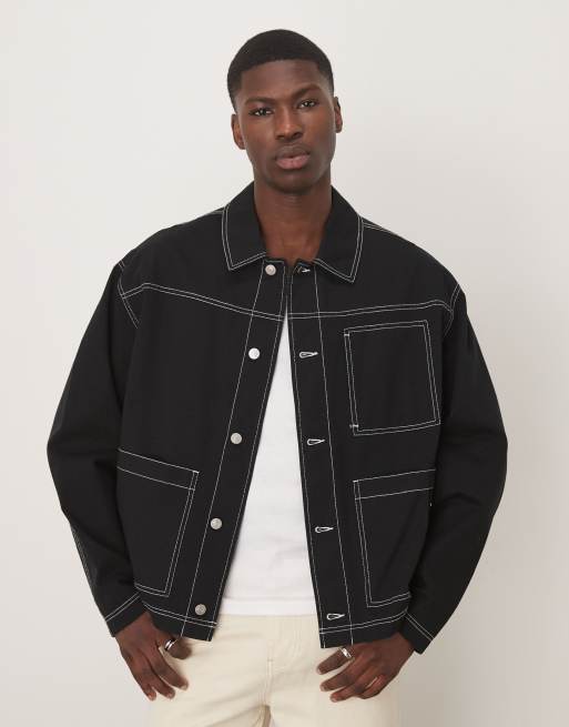 ASOS DESIGN – Czarna kurtka typu worker z kontrastowymi szwami