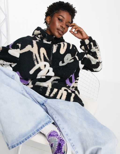 ASOS DESIGN – Czarna kurtka z imitacji kożuszka we wzór graffiti