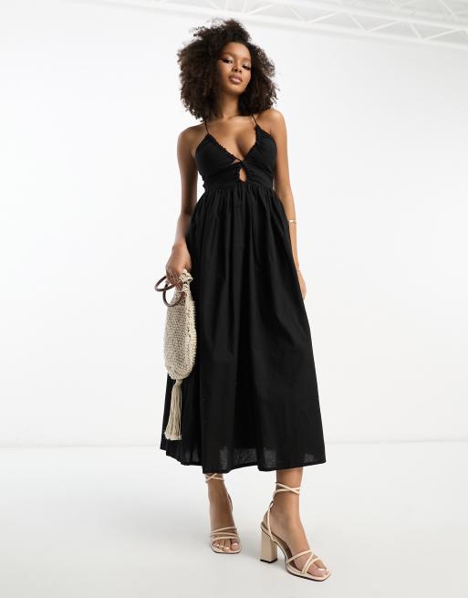 ASOS DESIGN – Czarna letnia sukienka midi z ozdobną górą