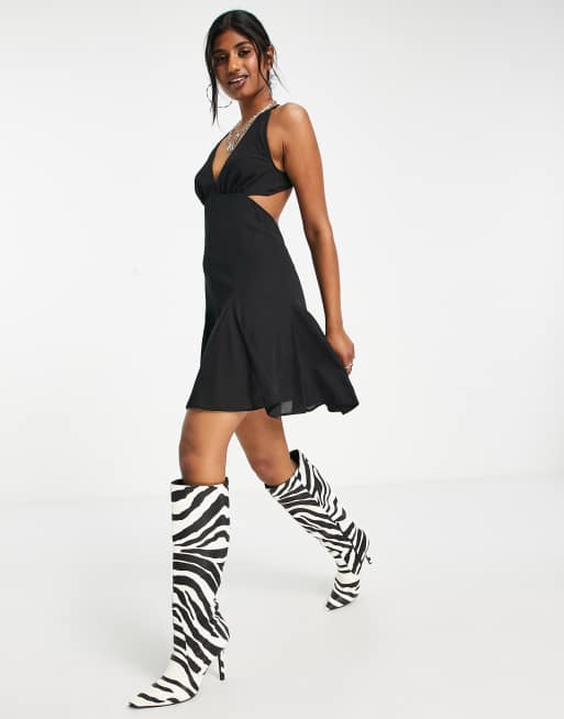 ASOS DESIGN – Czarna letnia sukienka mini na ramiączkach z godetami
