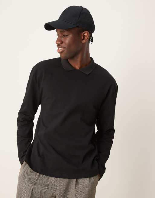 ASOS DESIGN – Czarna luźna koszulka polo z długim rękawem i okrągłym dekoltem