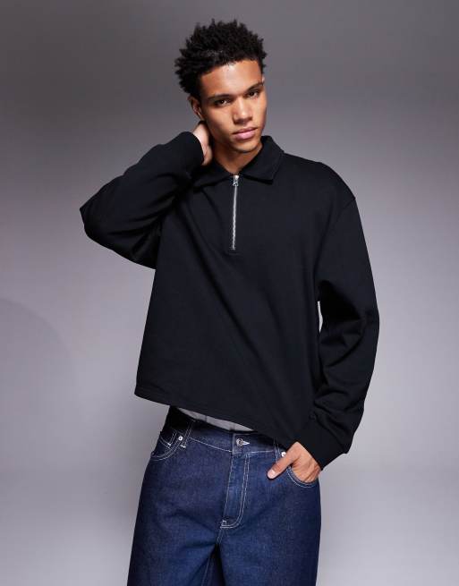 ASOS DESIGN – Czarna luźna pudełkowa bluza z kołnierzykiem i suwakiem pod szyją