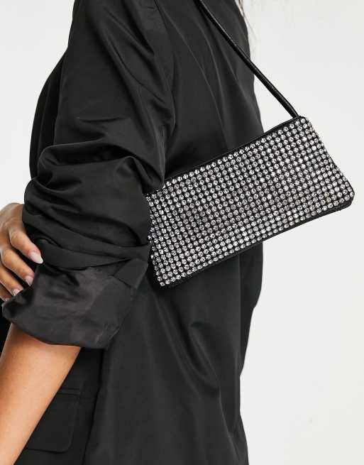 ASOS DESIGN – Czarna, mała torebka na ramię, zdobiona strasami