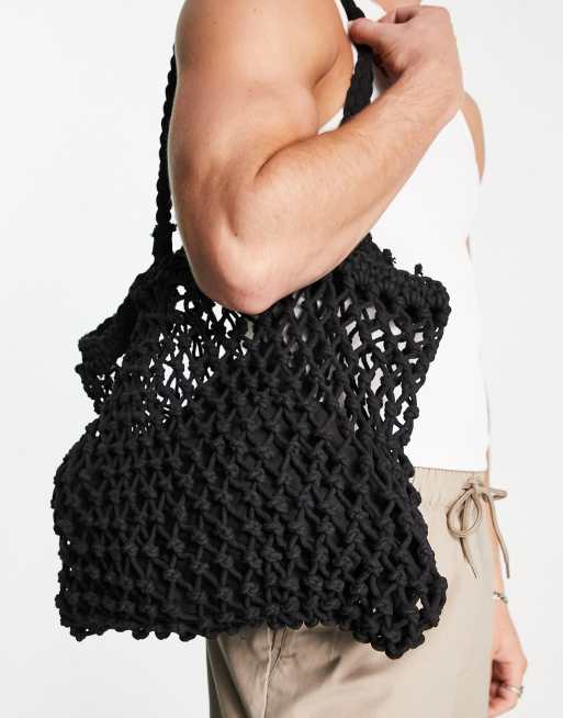 ASOS DESIGN – Czarna makramowa torba typu tote z dzianiny