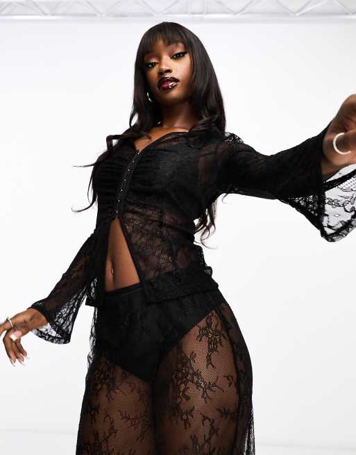 ASOS DESIGN – Czarna marszczona koszula zapinana na haftki z przodu