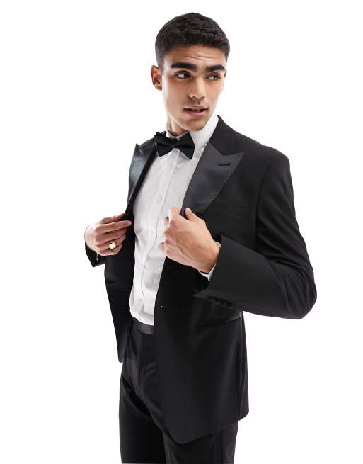 ASOS DESIGN – Czarna marynarka smokingowa o dopasowanym kroju z materiału premium