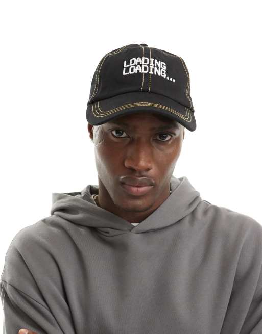 ASOS DESIGN – Czarna miękka czapka bejsbolówka z daszkiem, kontrastowym szwem i haftowanym napisem