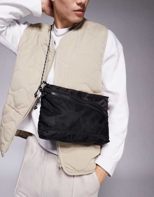 ASOS DESIGN – Czarna nylonowa torebka crossbody z siateczkowymi detalami