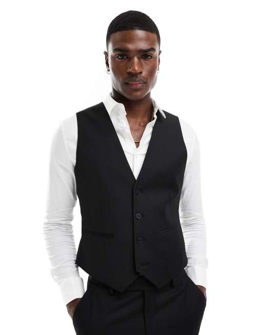 ASOS DESIGN – Czarna obcisła kamizelka garniturowa z domieszką wełny