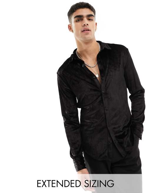 ASOS DESIGN – Czarna obcisła koszula z gniecionego aksamitu z krytą plisą na guziki