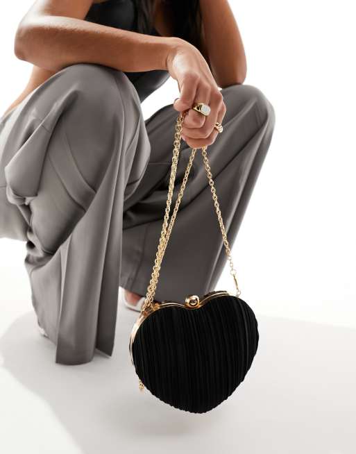 ASOS DESIGN – Czarna plisowana kopertówka w kształcie serca z odpinanym łańcuszkiem