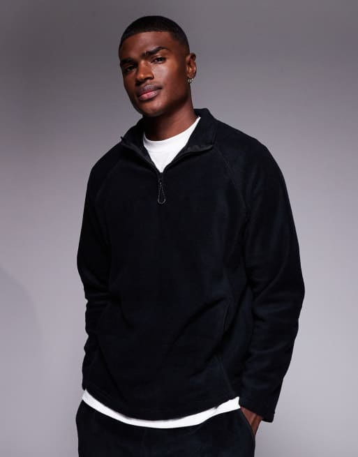 ASOS DESIGN – Czarna polarowa bluza o luźnym kroju z golfem i zamkiem pod szyją