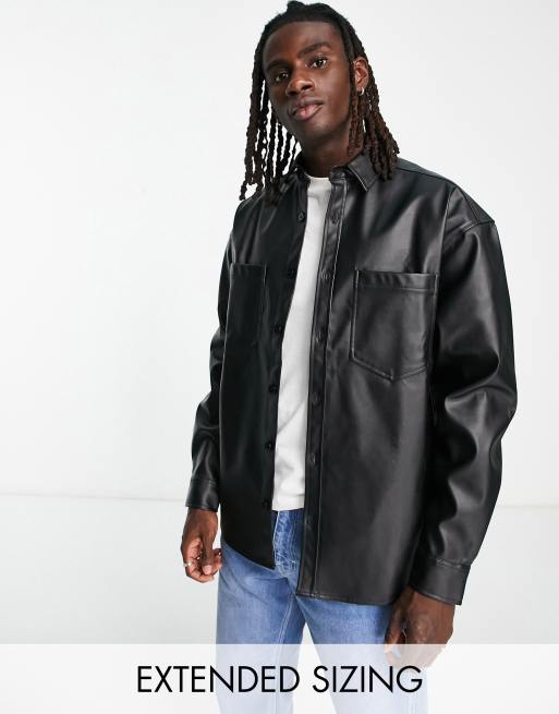 ASOS DESIGN – Czarna poliuretanowa koszula oversize z imitacji skóry