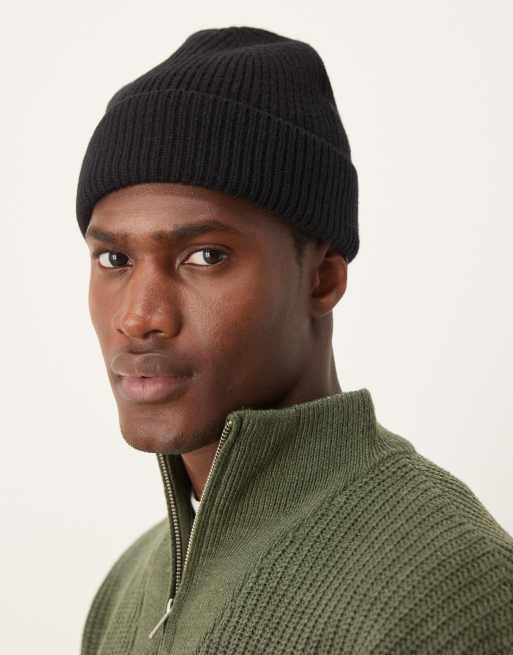 ASOS DESIGN – Czarna prążkowana czapka beanie o splocie patentowym z owczą wełną