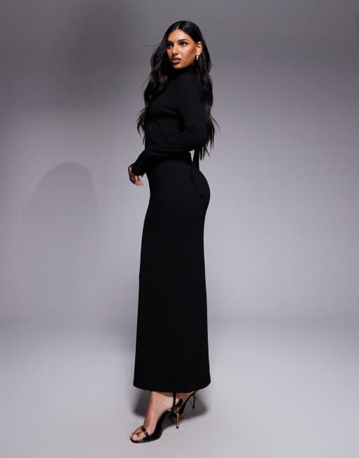 ASOS DESIGN – Czarna prążkowana sukienka maxi z długimi rękawami i szalem
