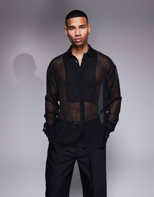 ASOS DESIGN – Czarna prześwitująca koszula ze wstawką