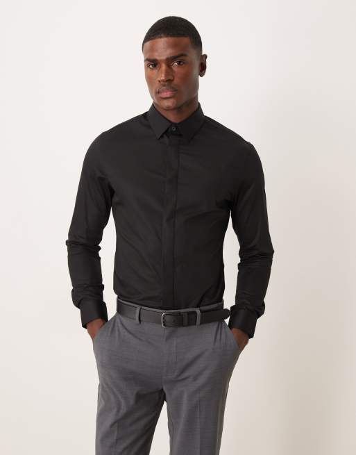 ASOS DESIGN – Czarna satynowa koszula o dopasowanym kroju z tkaniny easy iron