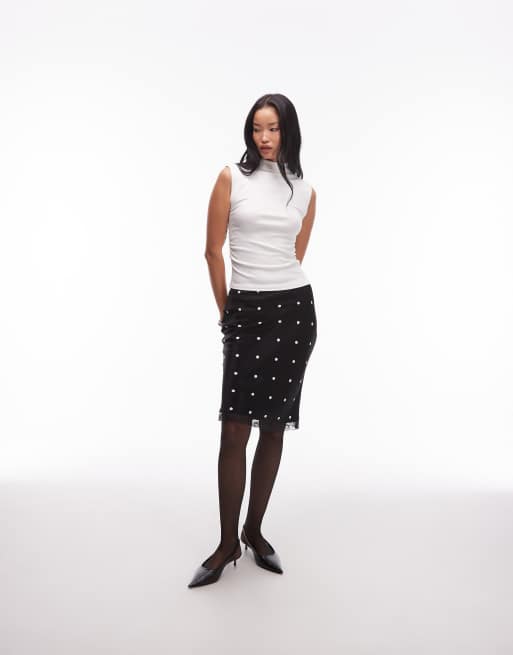 ASOS DESIGN – Czarna satynowa spódnica midi w groszki z koronkowym wykończeniem w stylu lat 90.
