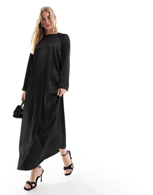 ASOS DESIGN – Czarna satynowa sukienka maxi oversize z okrągłym dekoltem